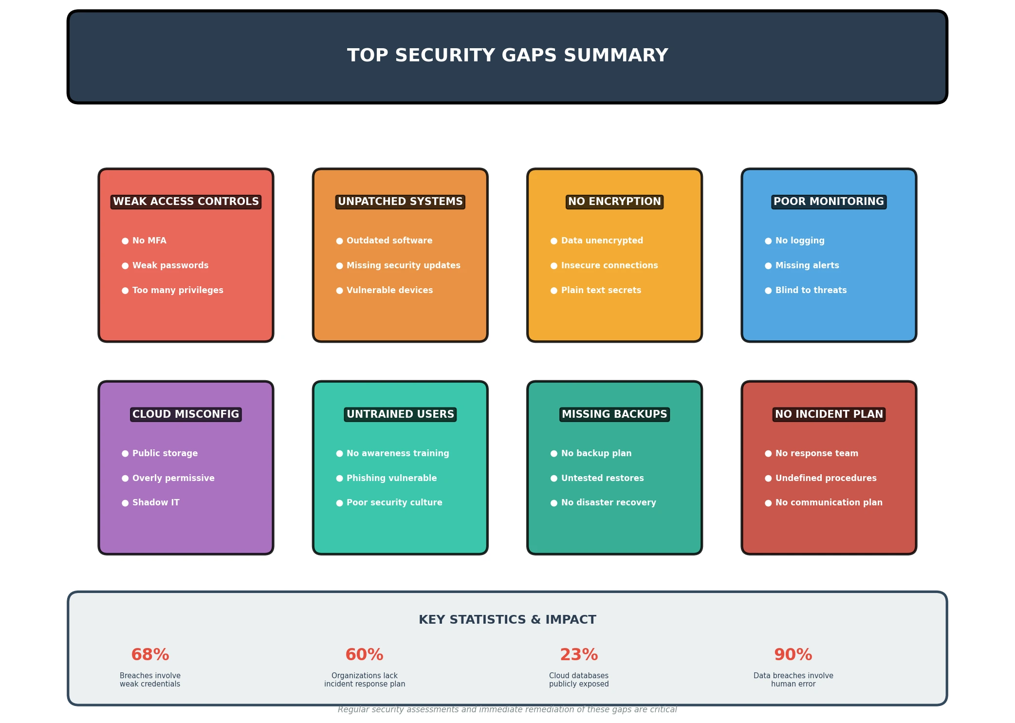Security Gaps Visual summary of prevalent security vulnerabilities